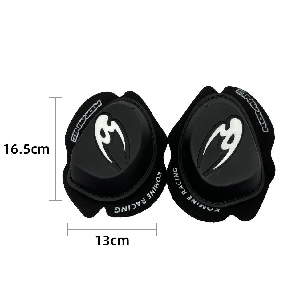 Duurzame zwarte kniesliders bieden bescherming tijdens het rijden in een helling, eenvoudig te bevestigen met klittenband, geschikt voor races, training en gewone sportieve ritten. Volledige beschrijving