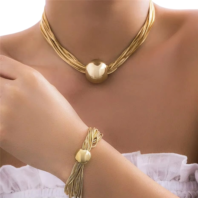 Startpagina Startpagina Sieraden en horloges Dames sieraden en horloges Dameskettingen en -halskettingen Punk Set Ketting 40+7 cm Armband 16+5 cm Boheemse Sieraden van Zinklegering Opvallende Damesaccessoires Feestcadeau