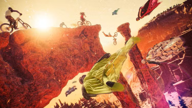 Spring in het enorme speelveld voor meerdere spelers in Riders Republic! Pak een fiets, ski's, snowboard of wingsuit en verken de open wereld sportparadijs, waar het aan jou is om de regels te maken – of ze te overtreden