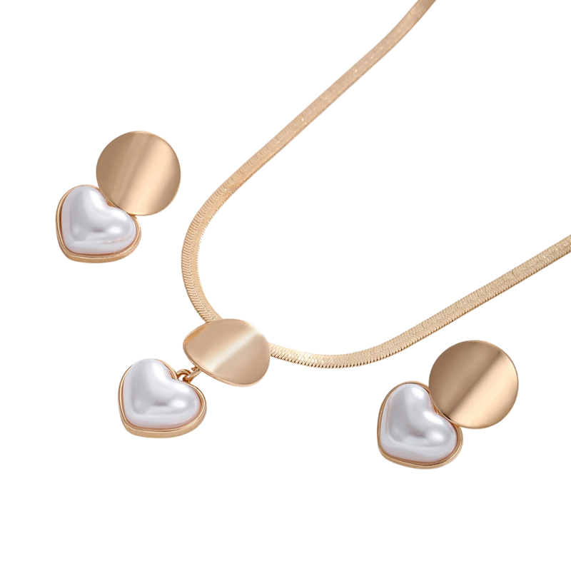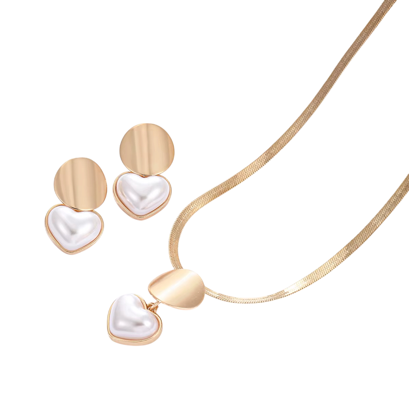 Elegante set met hart en parel geeft een romantische uitstraling aan je outfit en is geschikt voor feestelijke en dagelijkse gelegenheden. Volledige beschrijving