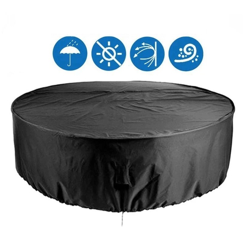 De oppervlaktebehandeling van de hoes beschermt tegen regen en ongunstige buitenomstandigheden die vlekken, vocht of slijtage van oppervlakken kunnen veroorzaken. Het materiaal is bestand tegen de zon en behoudt zijn sterkte, zelfs bij langdurige blootstelling aan de buitenomgeving. Het trekkoord aan de onderkant zorgt voor een stevige bevestiging, zodat de hoes goed blijft zitten, zelfs op winderige dagen. Hierdoor is hij geschikt voor gebruik in tuinen, op terrassen en balkons.