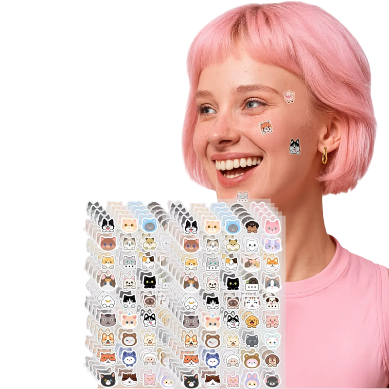 Schattige akné pleisters in de vorm van katten combineren effectieve huidverzorging met een speelse uitstraling. Ze zijn ideaal voor iedereen die puistjes op een milde, pijnloze en tegelijkertijd stijlvolle manier wil aanpakken. Dankzij de hydrokoloïde technologie helpen ze de aangetaste plek te beschermen tegen vuil en ondersteunen ze het natuurlijke genezingsproces van de huid. De pleisters zijn zacht, niet-irriterend en geschikt voor dagelijks gebruik op het gezicht.