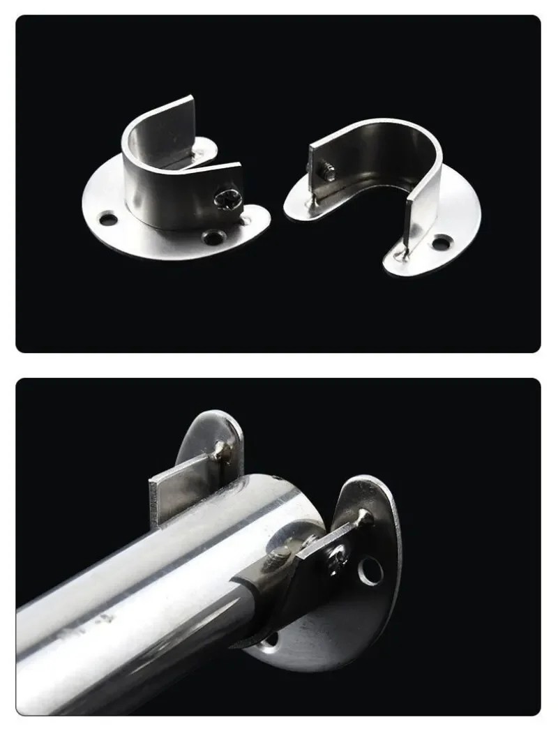 Deze kleerhangersteun is ontworpen voor een veilige bevestiging van ronde stangen met een kleinere diameter in meubels en opbergsystemen. Dankzij de eenvoudige vorm en nauwkeurige afwerking zorgt het voor stabiliteit zonder ongewenste beweging van de stang. Het roestvrijstalen materiaal biedt hoge weerstand tegen vocht en een lange levensduur. De steun is geschikt voor montage in kasten, planken, rekken en hangsystemen. Een ideale oplossing voor zowel thuis- als professioneel gebruik.