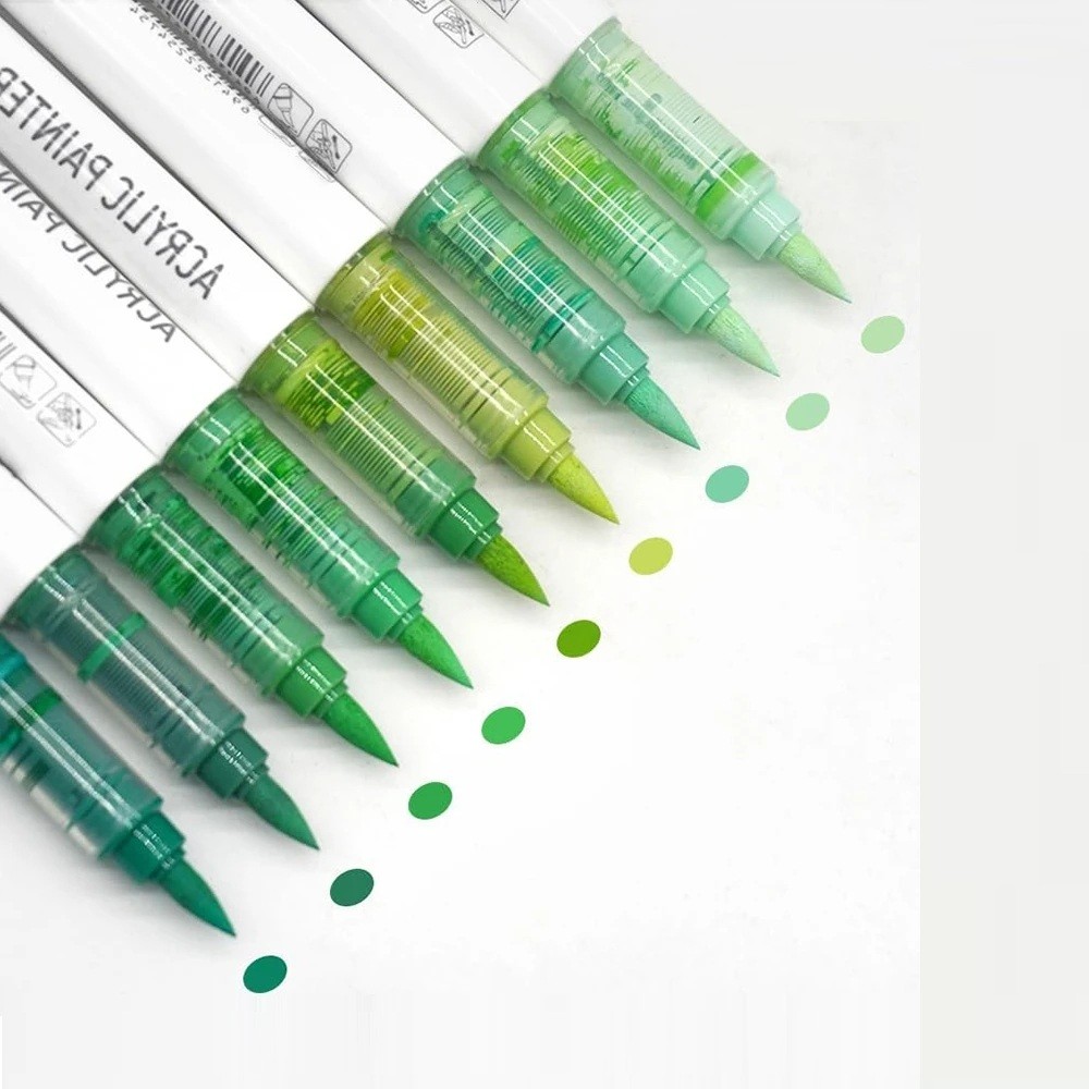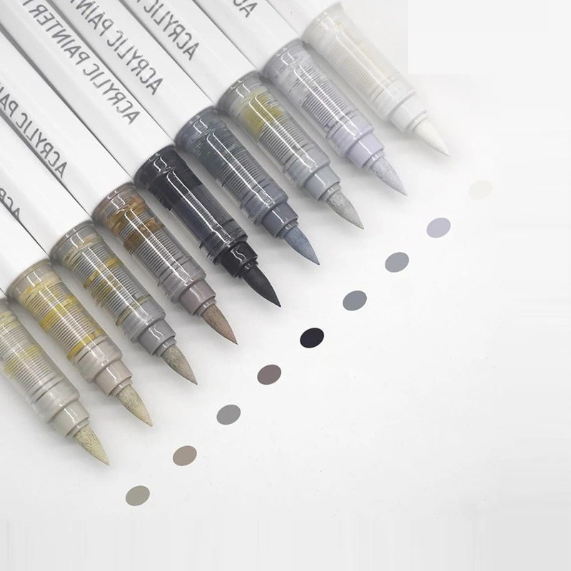 Deze set van 9 acrylmarkers is de ideale keuze voor kunstenaars en creatievelingen die levendige kleuren aan hun creaties willen toevoegen. Elke marker is uitgerust met een penseelpunt, wat precisietekenen en brede streken mogelijk maakt, ideaal voor creatief schilderen en schrijven. Het automatische inktcontrolesysteem zorgt voor een soepele kleurafgifte zonder onderbrekingen.
