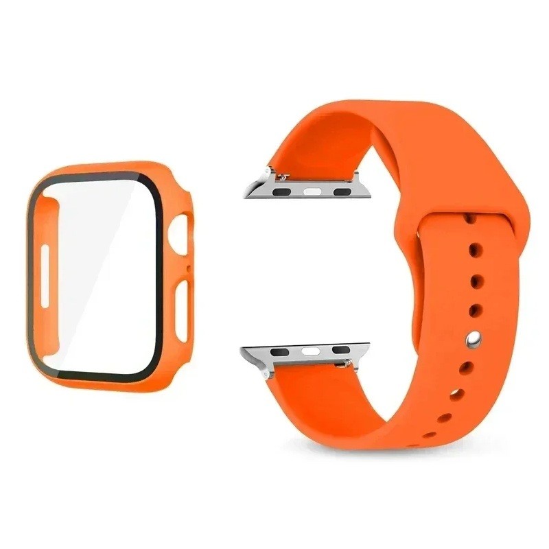 Set van gehard glas, behuizing en bandje voor Apple Watch 41 mm Series 9/8/7 – 9H beschermglas voor het display, matte horlogekast