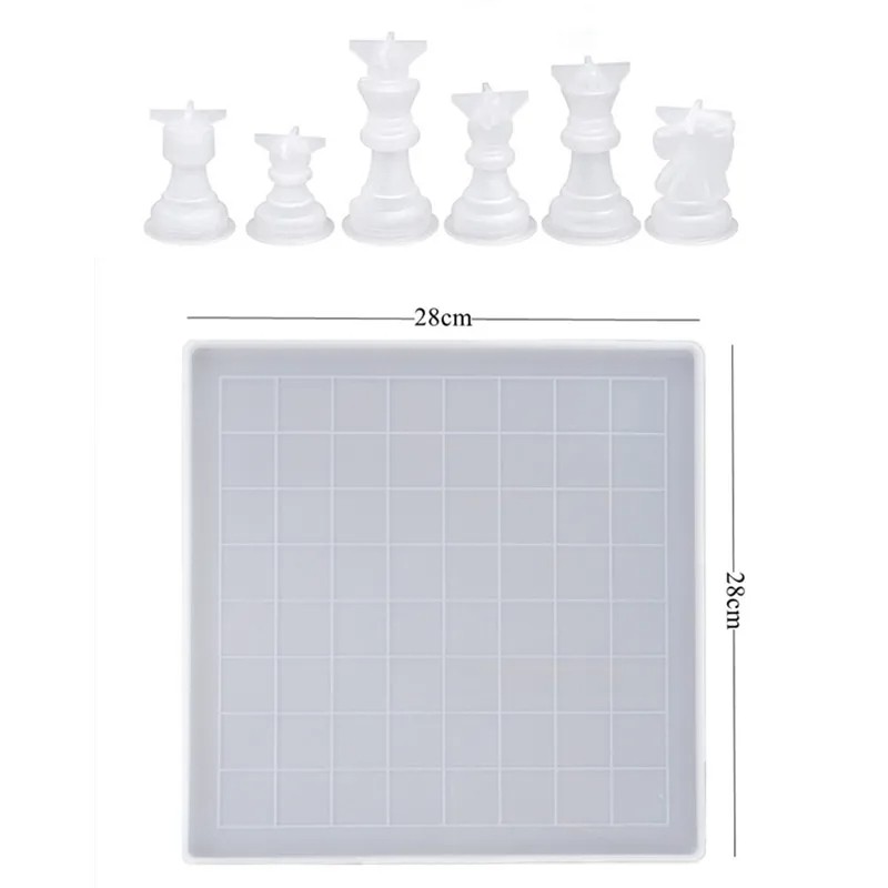 Siliconen mallen voor hars schaakstukken en speelbord 28 x 28 cm complete set voor het maken van een schaakspel