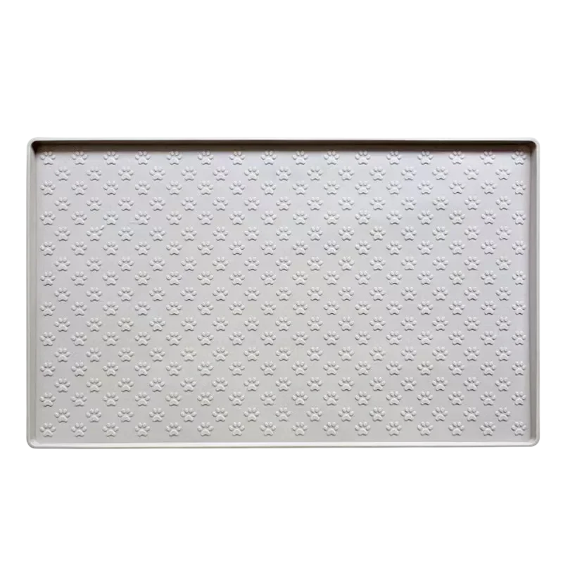 Deze siliconen placemat is de ideale oplossing voor iedereen die de voerplek van zijn huisdier schoon en esthetisch wil houden. Dankzij het praktische ontwerp en het duurzame materiaal zal het dagelijks gebruik doorstaan en bijdragen aan een betere hygiëne en comfort voor het dier. Het is verkrijgbaar in neutrale kleuren die gemakkelijk te combineren zijn met het interieur van uw huis. Als u op zoek bent naar een functionele en stijlvolle oplossing voor vloerbescherming, dan is deze placemat de juiste keuze. Het is perfect voor keukens, gangen en terrassen en dankzij de weerstand tegen water en vuil blijft het lang als nieuw.