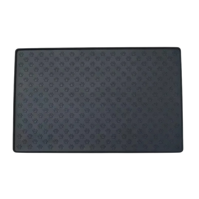 Houd uw huis schoon en georganiseerd met de praktische siliconen placemat voor honden en katten van 60 x 40 cm. Deze placemat is ontworpen met het oog op het comfort van uw huisdieren en het gemak van onderhoud in huis. Dankzij de verhoogde rand voorkomt het effectief dat water of brokjes buiten de voerbakken morsen, waardoor de vloer beschermd wordt tegen vervuiling. Het is gemaakt van hoogwaardig voedselveilig siliconen, dat waterdicht, antislip en gemakkelijk schoon te maken is, waardoor het een praktische aanvulling is voor elke honden- of kattenbezitter.