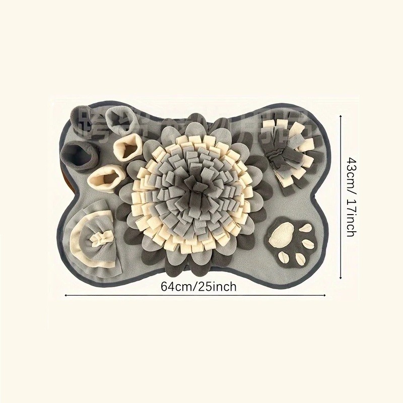 De snuffelmat voor huisdieren is ontworpen als een praktisch hulpmiddel voor mentale stimulatie, het vertragen van het voeren en de natuurlijke ontwikkeling van geurcapaciteiten. Met afmetingen van 64 x 43 cm biedt het voldoende ruimte om traktaties of voer te verstoppen, wat het dier motiveert om actief te zoeken. De mat helpt het schrokken te verminderen en bevordert een rustigere eetsituatie. Het duurzame nylon materiaal is geschikt voor dagelijks gebruik en behoudt goed zijn vorm tijdens het spelen. Het product is geschikt voor honden en katten van verschillende groottes en leeftijden.
