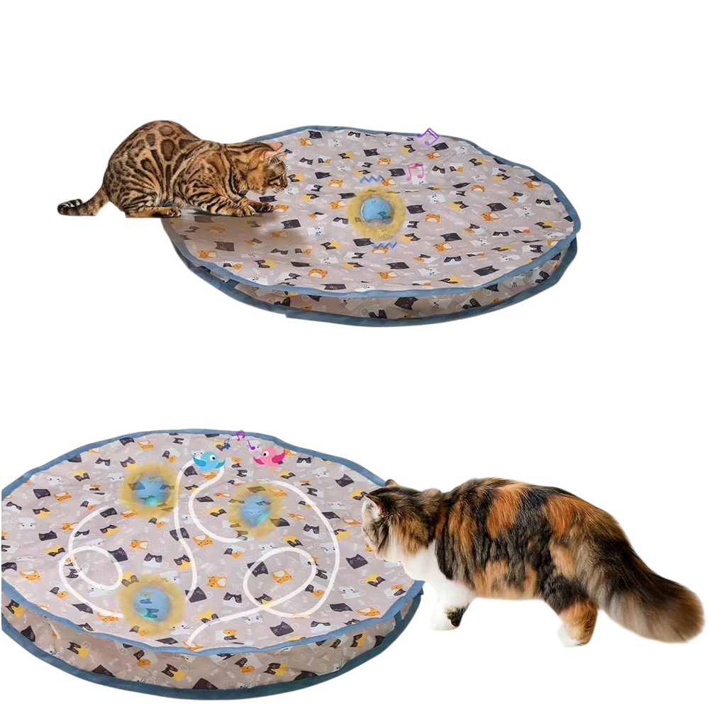 Een onderdeel van de constructie is een houder voor het verstoppen van de bewegende bal, die vrij binnen de zak kan bewegen. Katten volgen zijn beweging, proberen het met hun pootjes te vangen en achtervolgen het rond de omtrek van de cirkel. Dit speelelement verlengt de speeltijd aanzienlijk en bevordert actieve beweging en concentratie. De bal is niet stevig vastgemaakt, wat de onvoorspelbaarheid en aantrekkelijkheid van het spel vergroot.