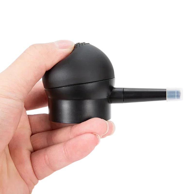 Deze applicator is de ideale aanvulling voor iedereen die haarvezels gebruikt voor optische verdikking van het kapsel. Het helpt om een natuurlijk resultaat te bereiken zonder ongelijkmatige toepassing van het product. Dankzij het eenvoudige mechanisme is het gebruik comfortabel en effectief. De compacte afmetingen maken eenvoudig transport en opslag mogelijk. De spuitmond met pomp biedt een praktische oplossing voor een precieze en professioneel ogende applicatie van haarvezels.