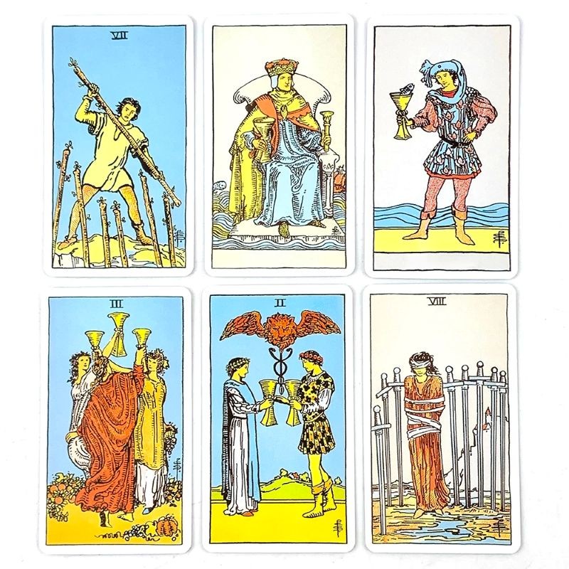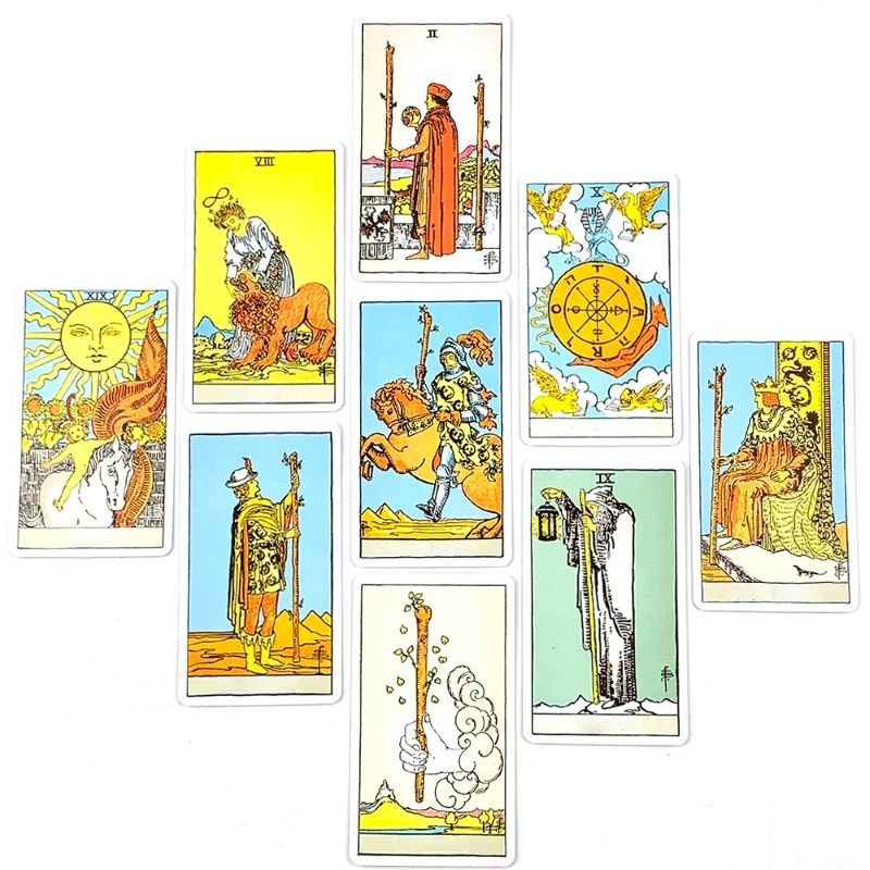 • Klassieke illustraties bekend van traditionele tarotkaarten