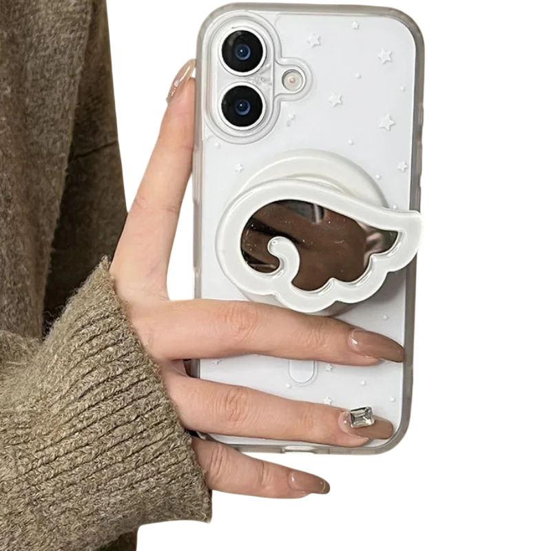Telefoonhouder 3D vleugel als spiegel Plastic decoratieve houder voor mobiel voor iPhone 16 Stijlvolle accessoire