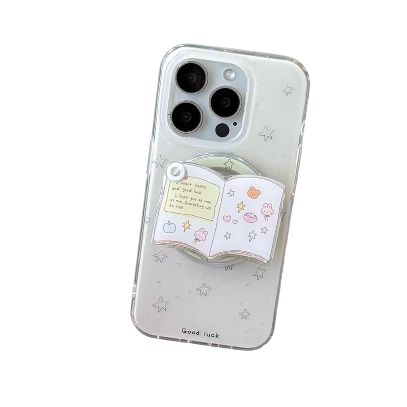 Startpagina Startpagina Mobieltjes, smartwatches en tablets Telefoonaccessoires Telefoonhouders Telefoonhouder voor iPhone 16 3D cosmetische spiegel met boek Plastic standaard voor mobiel en make-up