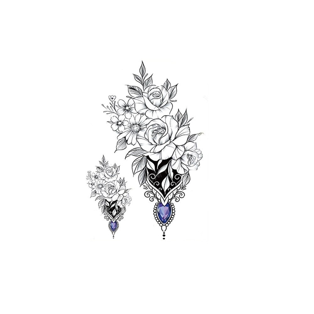 De tijdelijke bloementatoeage is gemaakt van inkt van hoge kwaliteit , waardoor hij er geweldig uitziet en lang blijft zitten. U kunt kiezen uit verschillende varianten en designs. Het aanbrengen is eenvoudig : maak de spons vochtig en druk deze op de huid.