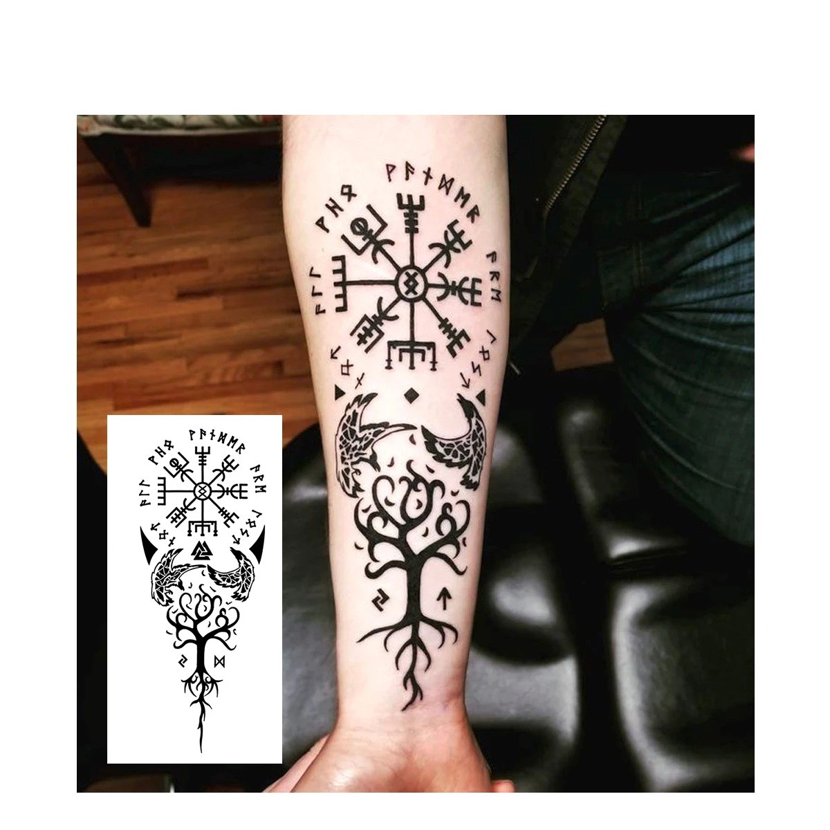 Tijdelijke waterdichte tatoeage met oude symbolen, 18 x 8 cm, magische tatoeage, nep-lichaamstattoo, mystieke tekens, duurzame tijdelijke tatoeage voor 15 dagen.