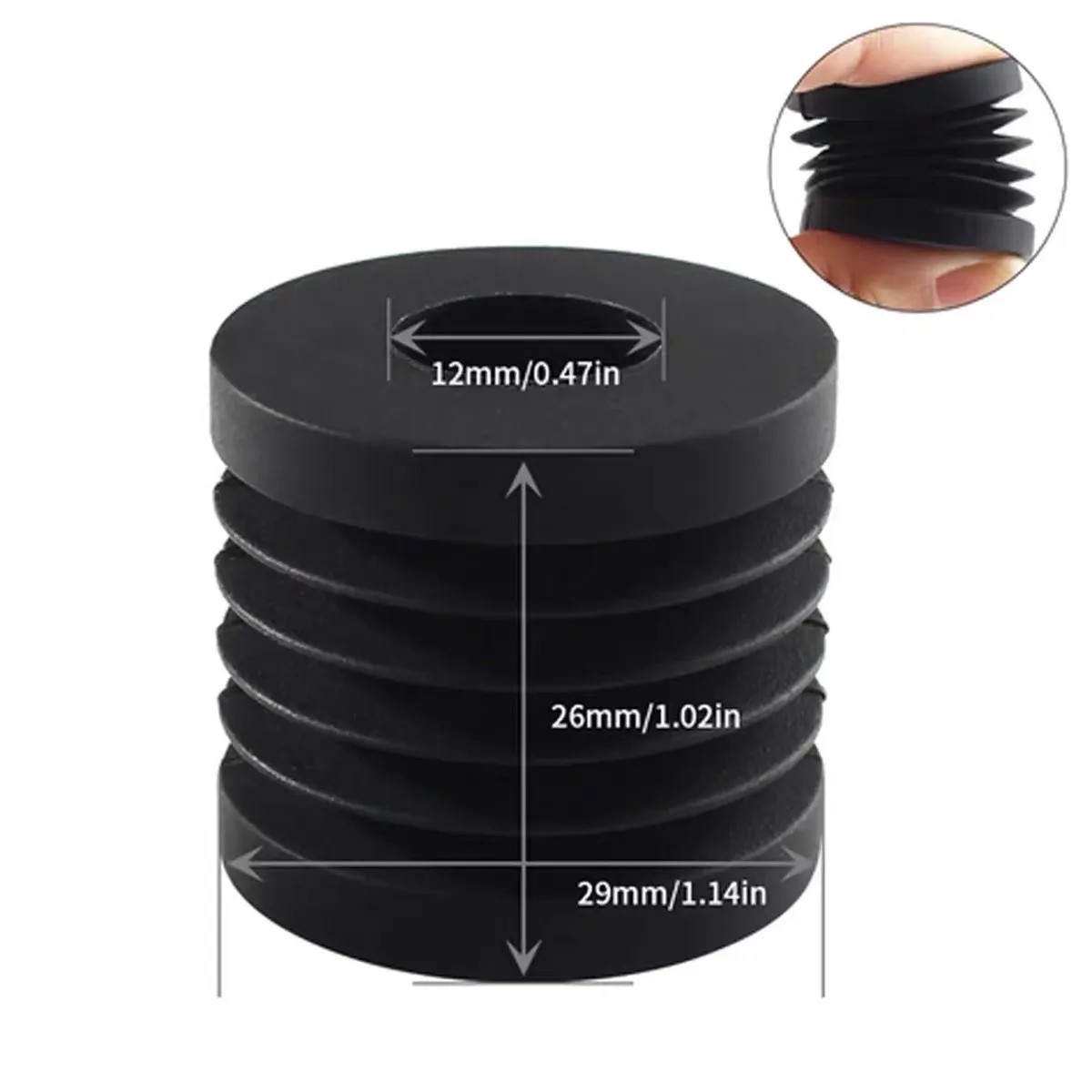 Elke demper is ontworpen met een geribbelde structuur die de trillingsabsorptie verhoogt en het contact met de ondergrond maximaliseert. De diameter van de bovenkant bedraagt 29 mm, de onderkant is ook 29 mm en de hoogte is 26 mm, wat een ideale combinatie van stabiliteit en flexibiliteit biedt. In het midden bevindt zich een gat met een diameter van 12 mm, dat het plaatsen op de originele voetjes van de printer mogelijk maakt. Het gebruikte materiaal is bestand tegen langdurige belasting en verhardt niet, zodat de dempers hun effectiviteit behouden, zelfs na vele uren gebruik.