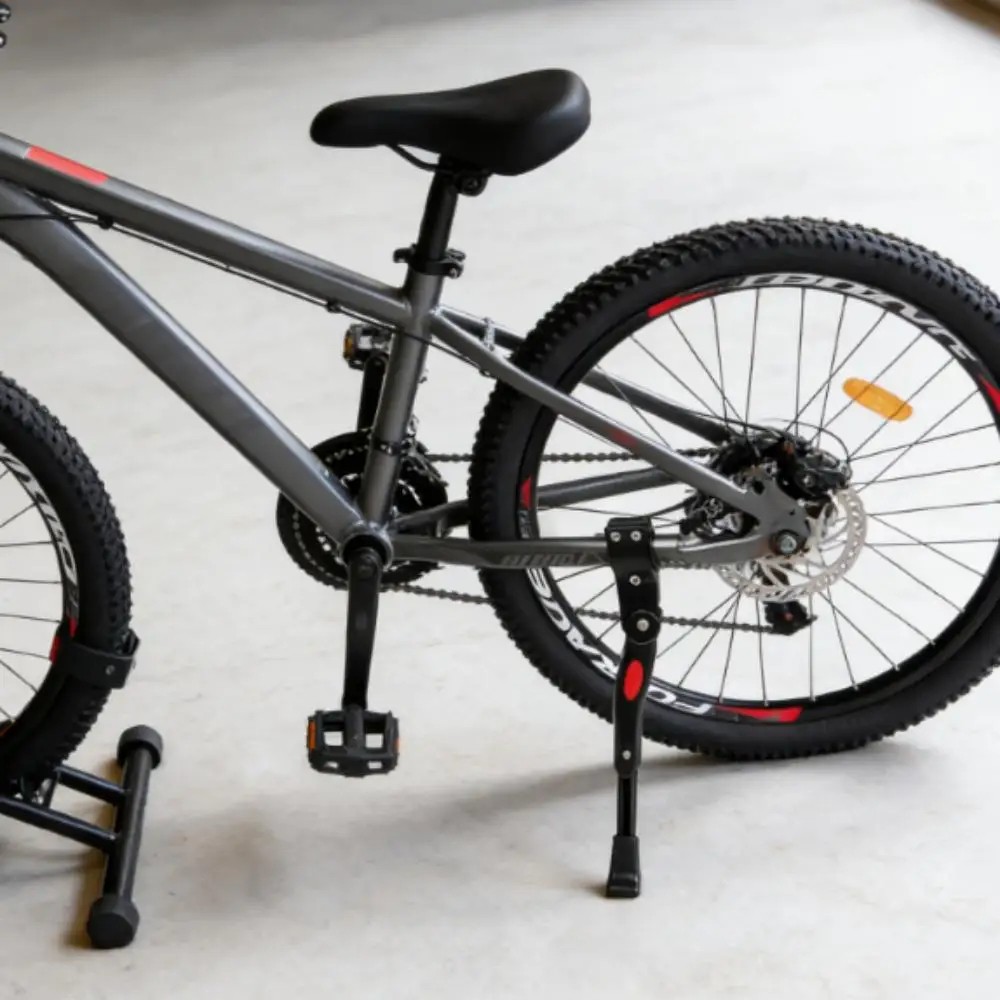De standaard is gemaakt van hoogwaardige aluminiumlegering en is ontworpen voor gebruik op zowel mountainbikes als racefietsen. Hij is compatibel met fietsen van de maten 20", 22", 24", 26" en 27,5" voor mountainbikes en 451/650C voor racefietsen. De verstelbare lengte van 32 cm tot 36,5 cm garandeert optimale stabiliteit voor verschillende fietsgroottes.