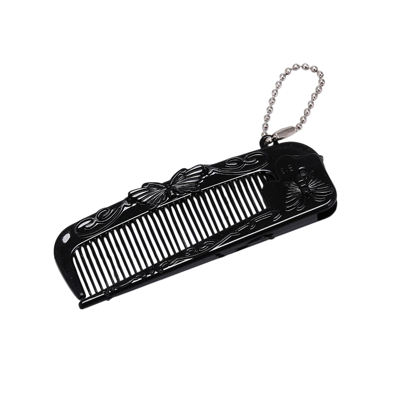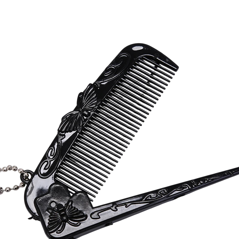 Vouwbare haarkam 9–16,5 cm Antistatische mini plastic kam met vlinderontwerp Professionele punt Zwarte pocketkam met lus