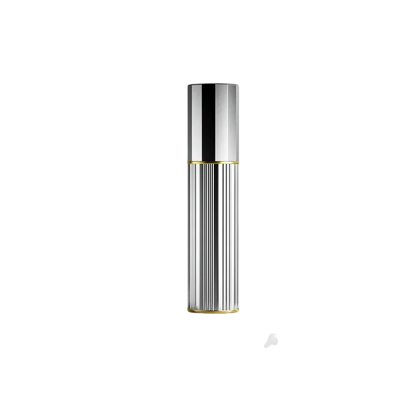 Glanzende vulbare parfumatomizer met geribbelde oppervlakte. Compacte grootte geschikt voor in de handtas, ideaal voor dagelijks gebruik en reizen. Volledige beschrijving