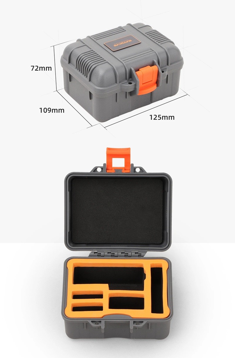 Praktische beschermhoes is ontworpen voor veilige opslag van de actiecamera DJI Osmo Action en klein accessoires tijdens het reizen en buitenactiviteiten. De stevige constructie van duurzaam plastic beschermt de inhoud tegen **vocht**, **schokken** en **druk**. Dankzij de compacte afmetingen past hij gemakkelijk in een rugzak, tas of zak. De interne schuimvulling is gevormd voor een stabiele fixatie van de opgeslagen componenten. De hoes is de ideale keuze voor gebruikers die hun apparatuur altijd veilig opgeborgen en klaar voor gebruik willen hebben.