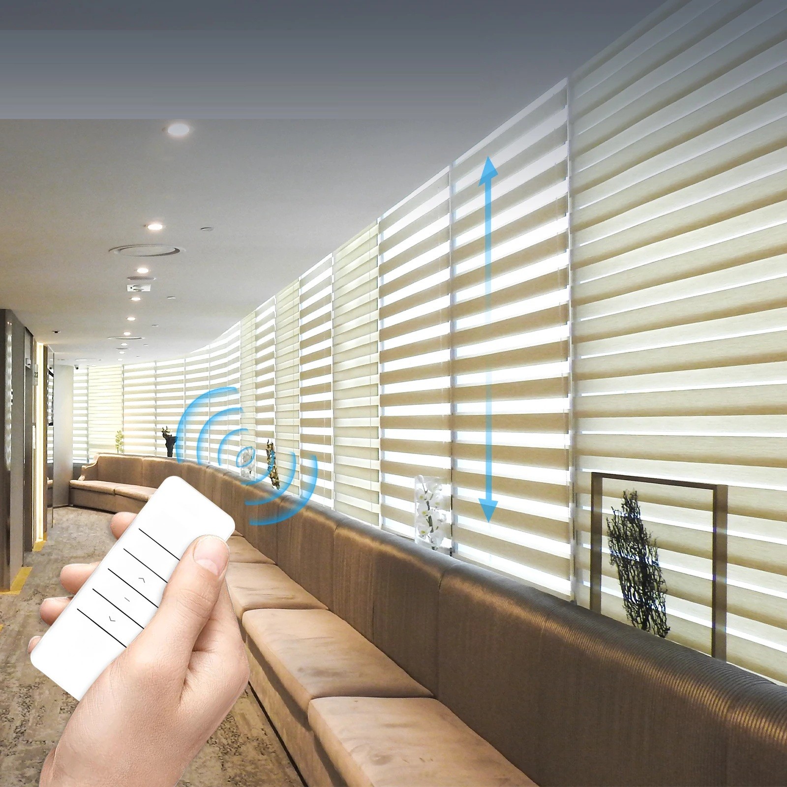 De bediening gebeurt via de mobiele app Tuya Smart of Smart Life, die het openen, sluiten en stoppen van de gordijnen vanaf elke locatie met internetverbinding mogelijk maakt. De motor verbindt zich direct met het WiFi-netwerk van 2,4 GHz en vereist geen enkele controlepoort. Ook wordt er een afstandsbediening meegeleverd, waarmee handmatige bediening zonder gebruik van een mobiele telefoon mogelijk is.