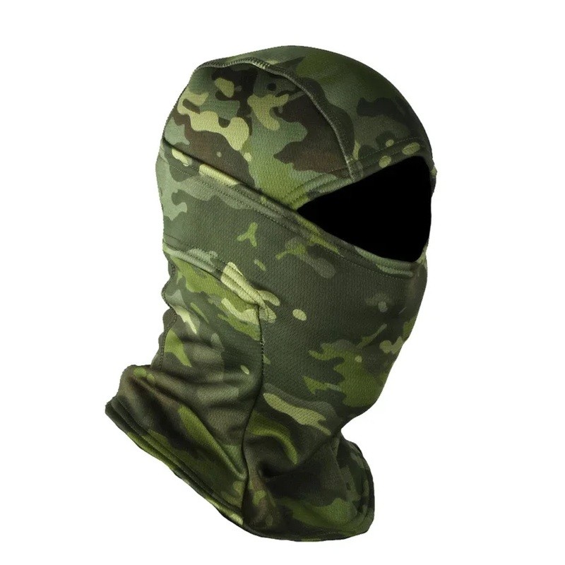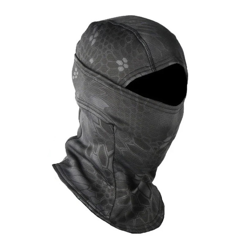 Met afmetingen van 38 × 23 cm past de balaclava gemakkelijk op de meeste hoofdmaten en behoudt dankzij de elasticiteit goed zijn vorm. Het is geschikt als zelfstandige bescherming of als voering onder een helm – ideaal voor wintersport, motorrijders en fietsers. Het stijlvolle camouflagepatroon geeft een sportieve en moderne uitstraling, terwijl de praktische constructie het hele gezicht, de nek en de oren bedekt voor maximale bescherming.
