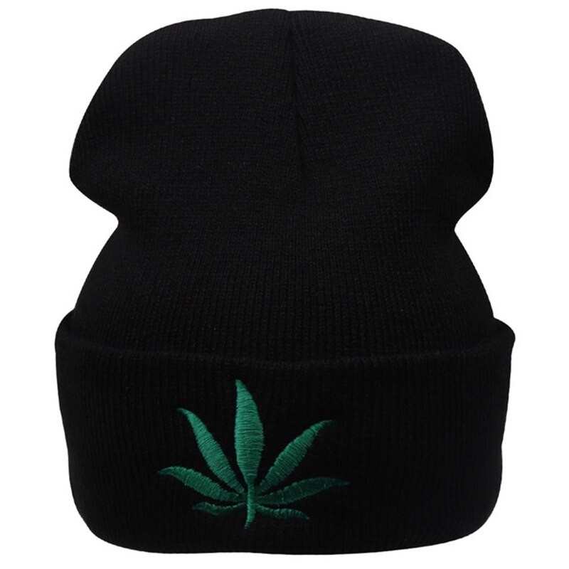 Grappige wintermuts met een groen blad op de voorkant.