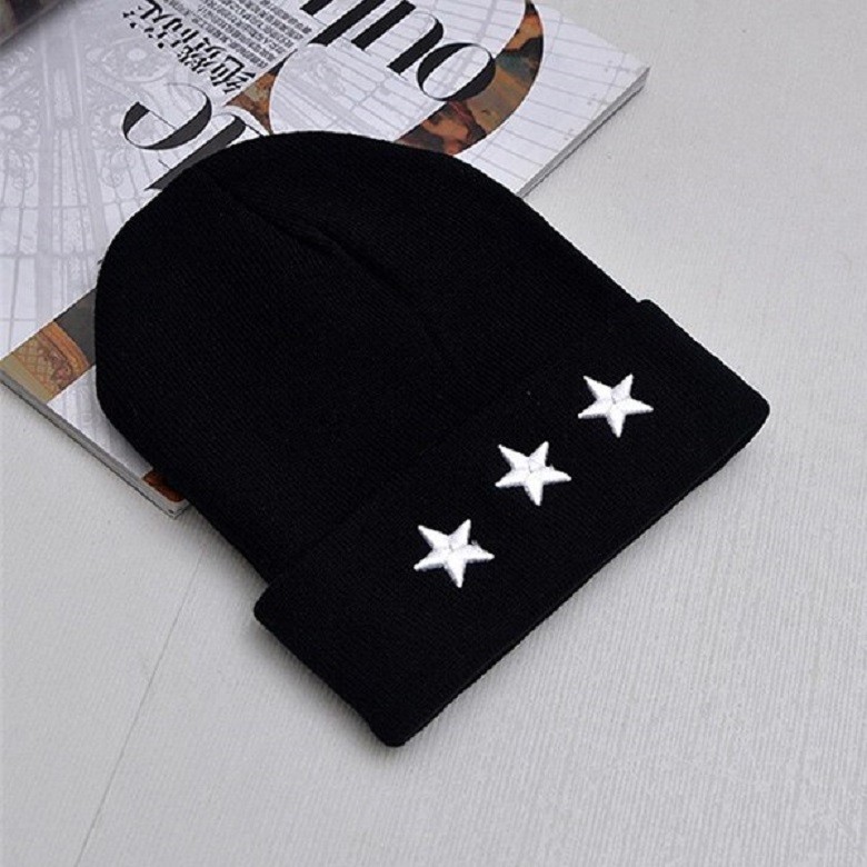Stijlvolle hoed met sterren op de voorkant.