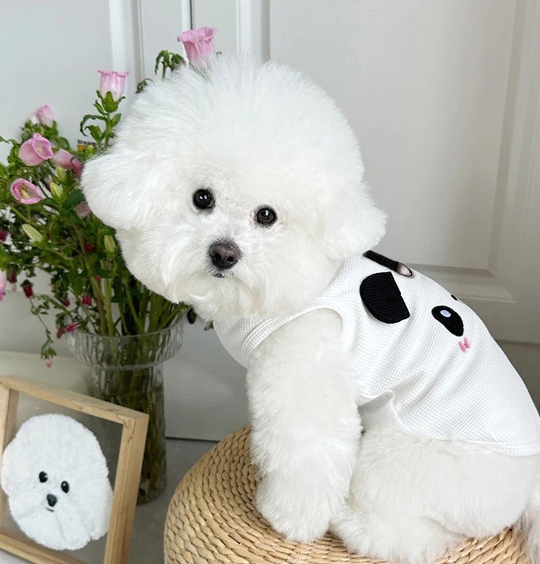 Stijlvolle hondenvest met panda gezicht en leash loopje. Comfortabele outfit van zachte stof voor honden 7,5–9 kg, ideaal voor dagelijks gebruik en reizen. Volledige beschrijving