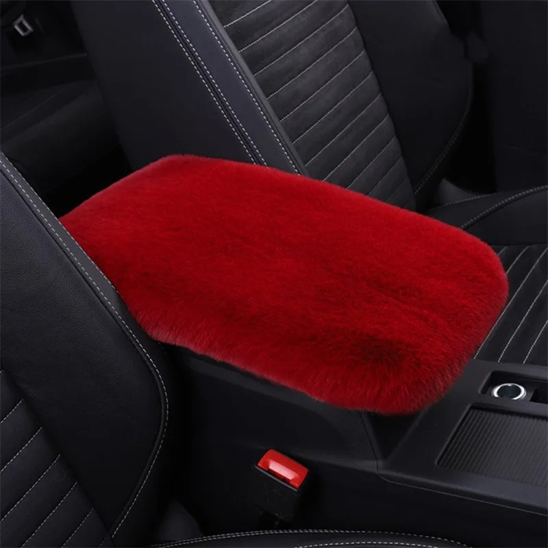Zitting voor armsteun in de auto 29 x 19,5 cm Rode pluche verwarmde zitting van kunstbont van konijnen M zachte fluffy zitting van de console