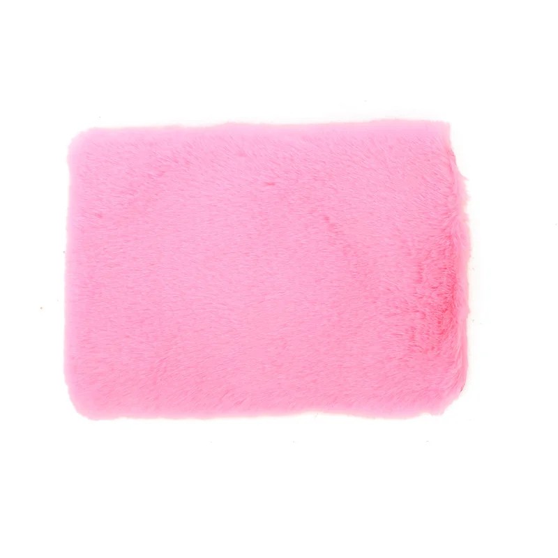 Zachte roze pluche hoes van donzige polyester en kunstbont van konijnen, universele maat, eenvoudig te bevestigen met elastische banden. Volledige beschrijving